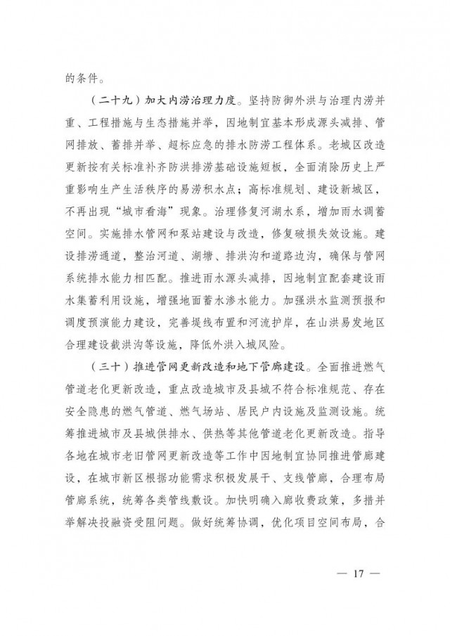 《方案》提出,到2025年,城市可持續(xù)發(fā)展能力明顯增強,城鎮(zhèn)開發(fā)邊界全面劃定,新增建設用地規(guī)??刂圃?950萬畝以內(nèi),城市內(nèi)澇治理取得明顯成效,城市燃氣等管道老化更新改造深入推進,能源資源利用效率大幅提升,城市黑臭水體基本消除,地級及以上城市空氣質(zhì)量優(yōu)良天數(shù)比率提高到87.5%,城市建成區(qū)綠化覆蓋率超過43%。系統(tǒng)完備、科學規(guī)范、運行有效的城市治理體系基本建立,治理能力明顯增強。
