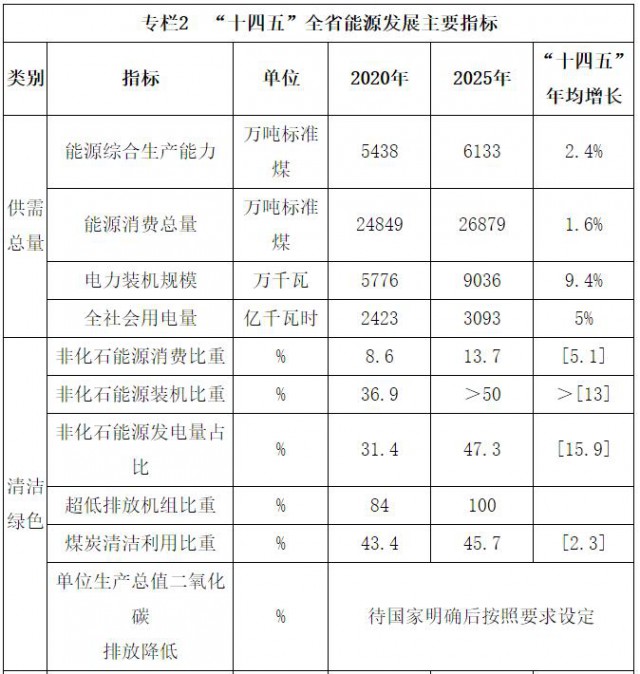 按照構(gòu)建清潔低碳、安全高效的現(xiàn)代能源體系和著力建設(shè)清潔能源強省的目標(biāo)要求,到“十四五”末全省能源發(fā)展主要目標(biāo)是: