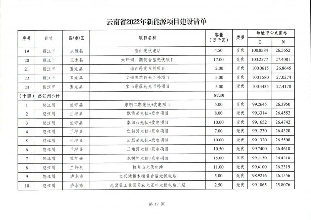 根據(jù)項(xiàng)目清單來看(附件查看清單),昆明市193.8萬千瓦、昭通市129.9萬千瓦、曲靖市440.6萬千瓦、玉溪市216.89萬千瓦、保山市194.8萬千瓦、楚雄州556.46萬千瓦、紅河州206.6萬千瓦、文山州231萬千瓦、普洱市101.5萬千瓦、西雙版納州91.5萬千瓦、大理州259.99萬千瓦、德宏州56.1萬千瓦、麗江市163.3萬千瓦、怒江州87.1萬千瓦、臨滄市271萬千瓦。