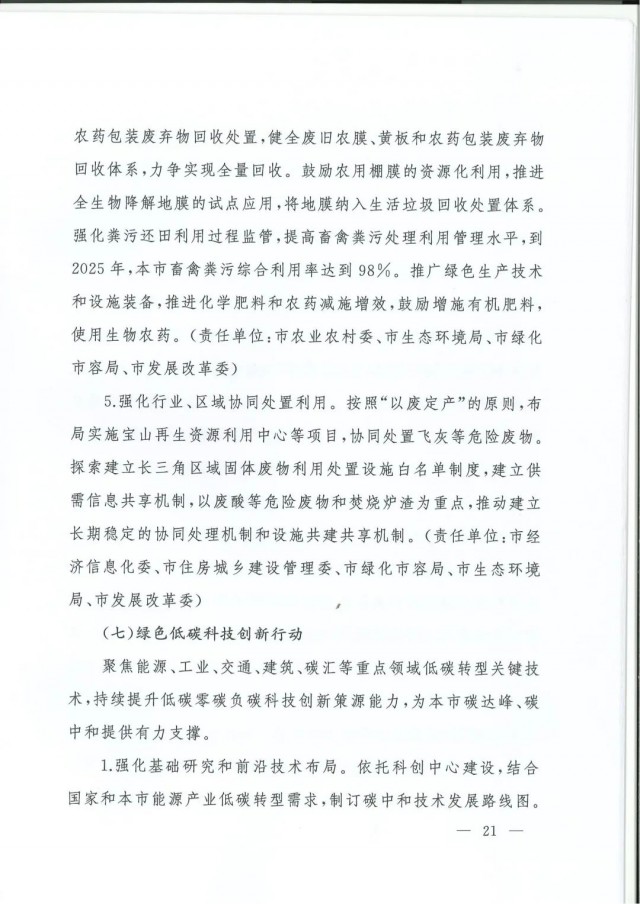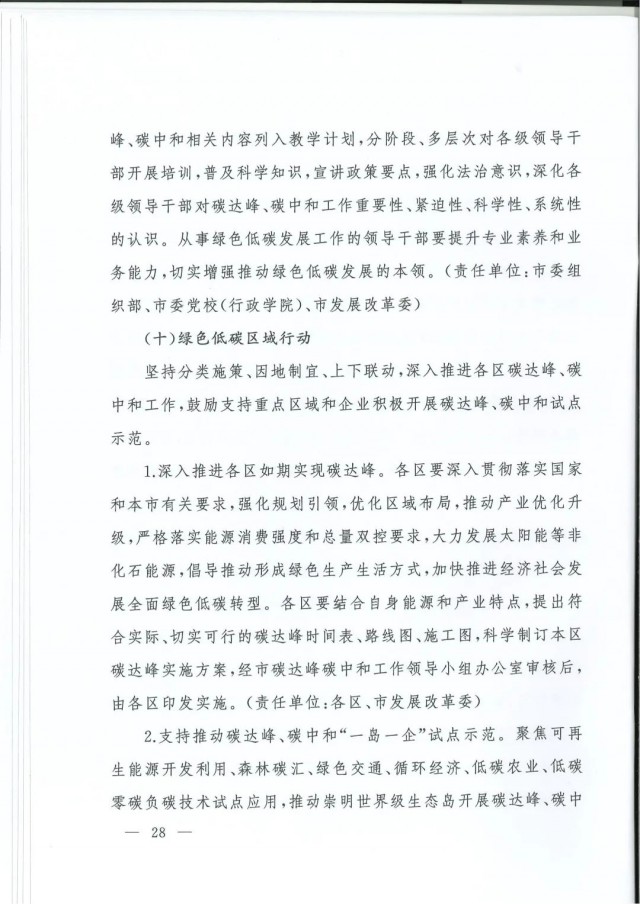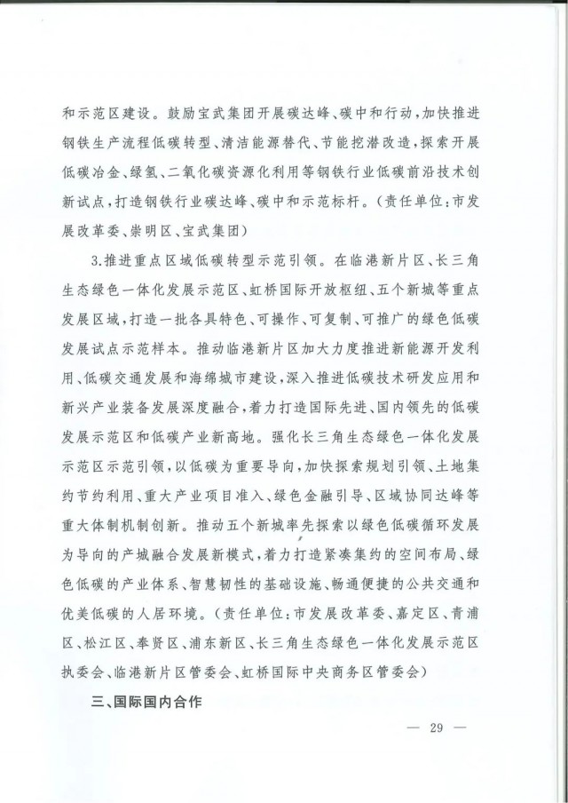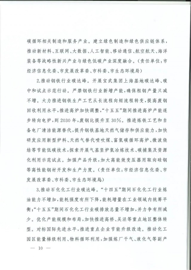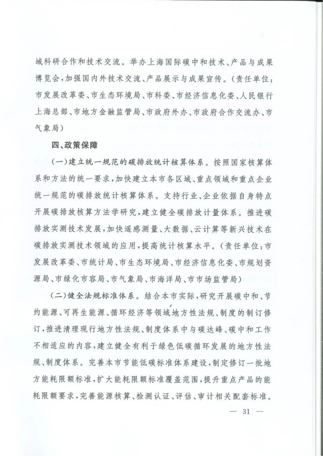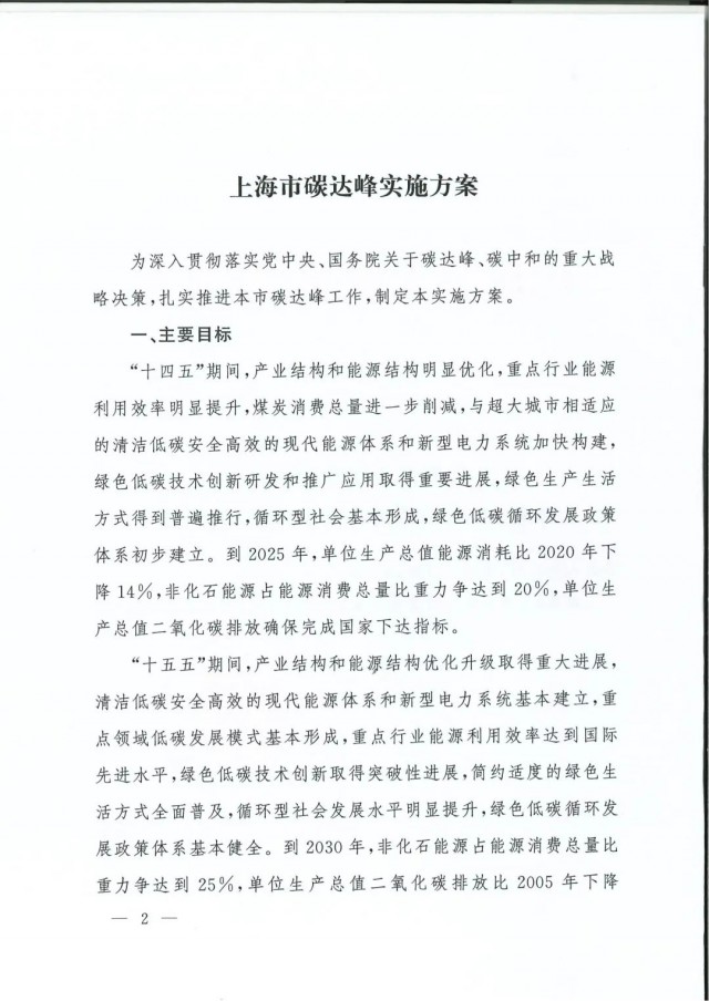 近日,上海市人民政府辦公廳印發(fā)了《上海市碳達峰實施方案》。《方案》明確主要目標:到2025年,單位生產(chǎn)總值二氧化碳排放確保完成國家下達指標。到2030年單位生產(chǎn)總值二氧化碳排放比2005年下降70%,確保2030年前實現(xiàn)碳達峰。并計劃組織實施“碳達峰十大行動”,包括能源綠色低碳轉(zhuǎn)型行動、節(jié)能降碳增效行動、工業(yè)/城鄉(xiāng)建設(shè)/交通領(lǐng)域綠色低碳行動、循環(huán)經(jīng)濟助力降碳行動、綠色低碳科技創(chuàng)新行動、碳匯能力鞏固提升行動、綠色低碳全民行動、綠色低碳區(qū)域行動。