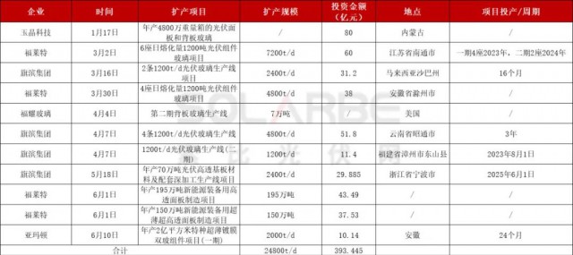 從上半年公布的光伏玻璃擴(kuò)產(chǎn)信息來看,玉晶科技、福萊特、旗濱集團(tuán)、福耀玻璃、亞瑪頓共計(jì)發(fā)布了超24800t/d(噸/日)玻璃擴(kuò)產(chǎn)信息。然而,更多光伏玻璃擴(kuò)產(chǎn)項(xiàng)目處于聽證階段。
