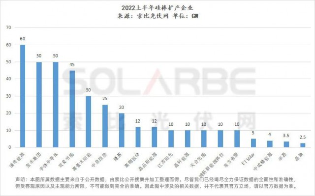 其中,硅棒擴(kuò)產(chǎn)規(guī)模共計(jì)219GW,主要集中于以下8家企業(yè)。