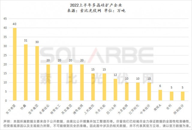 ●為填補(bǔ)供應(yīng)缺口,2022年上半年,有不少于19家企業(yè)發(fā)布硅料擴(kuò)產(chǎn)計(jì)劃,擴(kuò)產(chǎn)總量達(dá)458萬噸(多晶硅269萬噸,工業(yè)硅189萬噸),投資金額超1620億,擴(kuò)產(chǎn)多集中在新疆、內(nèi)蒙古、寧夏、四川等地。