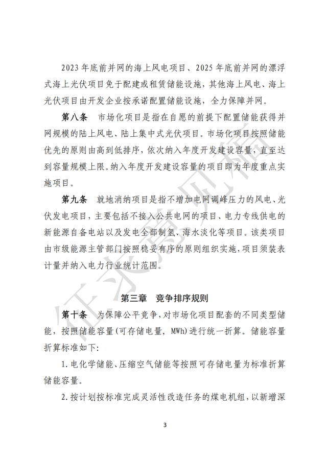 3)2023 年底前并網(wǎng)的海上風電項目、2025 年底前并網(wǎng)的漂浮式海上光伏項目免于配建或租賃儲能設施,其他海上風電、海上 光伏項目由開發(fā)企業(yè)按承諾配置儲能設施,全力保障并網(wǎng)。