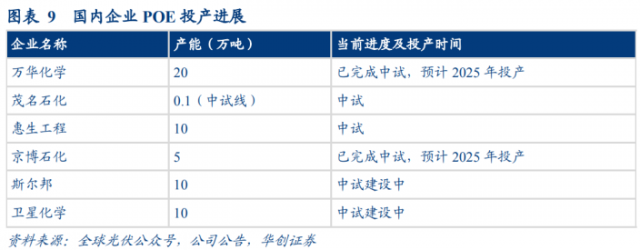 萬(wàn)華化學(xué):2021年9月,公司自主知識(shí)產(chǎn)權(quán)的POE產(chǎn)品已經(jīng)完成中試。按照規(guī)劃,萬(wàn)華將在2023年投產(chǎn)10萬(wàn)噸POE,2025年之前合計(jì)投產(chǎn)20萬(wàn)噸。