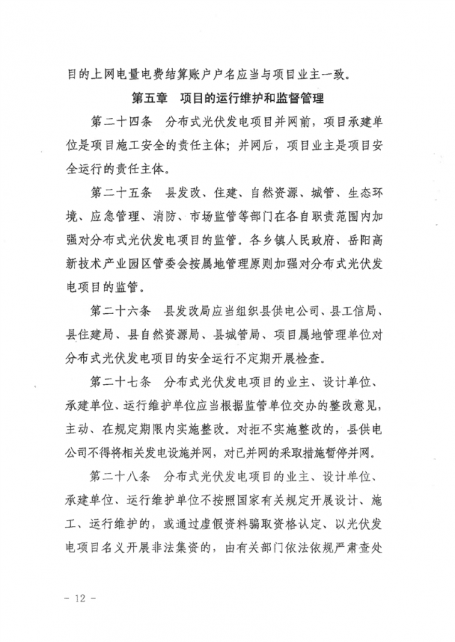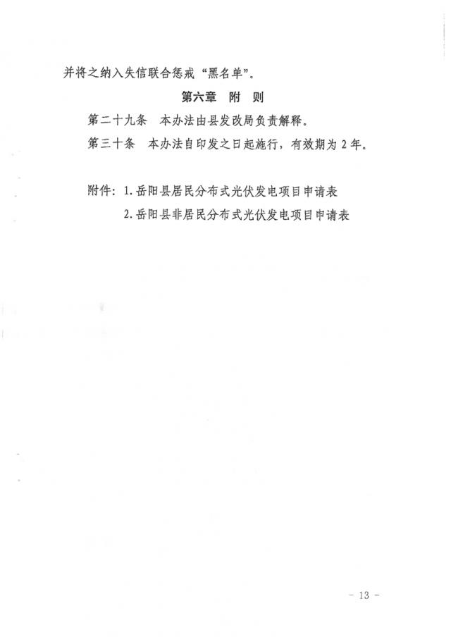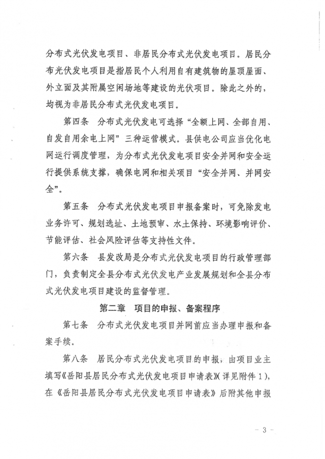可免除發(fā)電業(yè)務(wù)許可、土地預(yù)審、節(jié)能評(píng)估等文件!湖南岳陽(yáng)縣發(fā)布《分布式光伏發(fā)電項(xiàng)目管理暫行辦法》