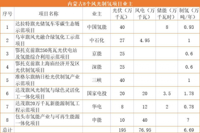 根據(jù)項目及資料查詢顯示,上述項目的主要投資業(yè)主分別為中國氫能、中石化、京能、深能、三峽、國家電投、華電以及申能等企業(yè)。具體項目情況見下: