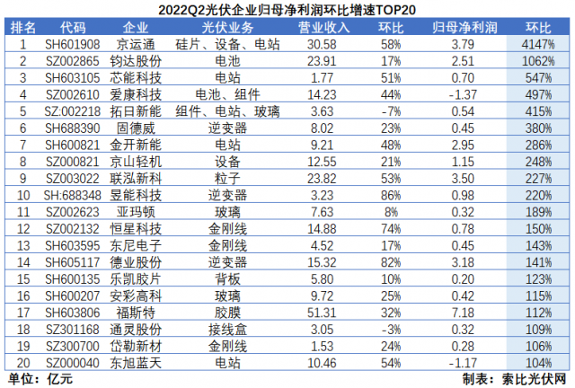 具體到企業(yè)上,京運通一季度受到新增硅片產(chǎn)能爬坡以及原有產(chǎn)能檢修的影響,毛利率僅為10.74%,受此影響歸母凈利潤也同比下降96%。不過,進入二季度以后隨著新增產(chǎn)能逐步達產(chǎn)、原有產(chǎn)能檢修結(jié)束,盈利能力迅速釋放,毛利率環(huán)比提升13.94個百分點至24.72%,帶動歸母凈利潤環(huán)比增長4147%。