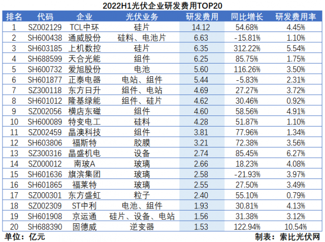 隨著N型電池技術(shù)產(chǎn)業(yè)化落地的不斷加速,疊加光伏行業(yè)“降本增效”的發(fā)展邏輯,光伏企業(yè)的研發(fā)投入也不斷攀升。根據(jù)索比光伏網(wǎng)的統(tǒng)計,剔除8家光伏電站運營企業(yè)后,71家光伏企業(yè)研發(fā)費用總額達到130億元,平均增速達到36.65%,占總營收的比重達到2.41%,平均研發(fā)費用率高達3.50%。
