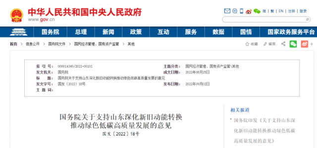 國務(wù)院關(guān)于支持山東深化新舊動能轉(zhuǎn)換推動綠色低碳高質(zhì)量發(fā)展的意見