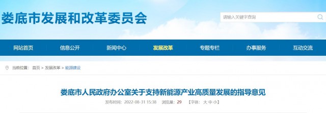 近日,湖南婁底市人民政府辦公室發(fā)布關(guān)于支持新能源產(chǎn)業(yè)高質(zhì)量發(fā)展的指導(dǎo)意見。提出全市總體目標(biāo):重點(diǎn)謀劃實(shí)施好風(fēng)電、光伏、化學(xué)儲能、抽水蓄能等項(xiàng)目,實(shí)現(xiàn)多能互補(bǔ)協(xié)同發(fā)展,將婁底市打造成全省重要的新能源基地。到2025年,全市新能源資源開發(fā)利用水平顯著提升,新能源發(fā)電總裝機(jī)達(dá)到240萬千瓦以上,其中光伏裝機(jī)180萬千瓦,風(fēng)電裝機(jī)60萬千瓦。