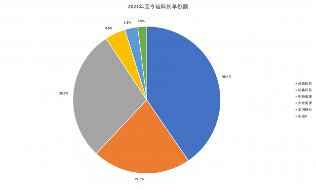 通過(guò)簽訂硅料長(zhǎng)單、鎖定優(yōu)質(zhì)客戶,硅料三巨頭能夠有效規(guī)避市場(chǎng)瘋狂擴(kuò)產(chǎn)、競(jìng)爭(zhēng)加劇對(duì)自身出貨量的影響,同時(shí)也能夠有效消化自身的新增產(chǎn)能,在高速增長(zhǎng)的市場(chǎng)中保持甚至提升自身的市場(chǎng)份額。