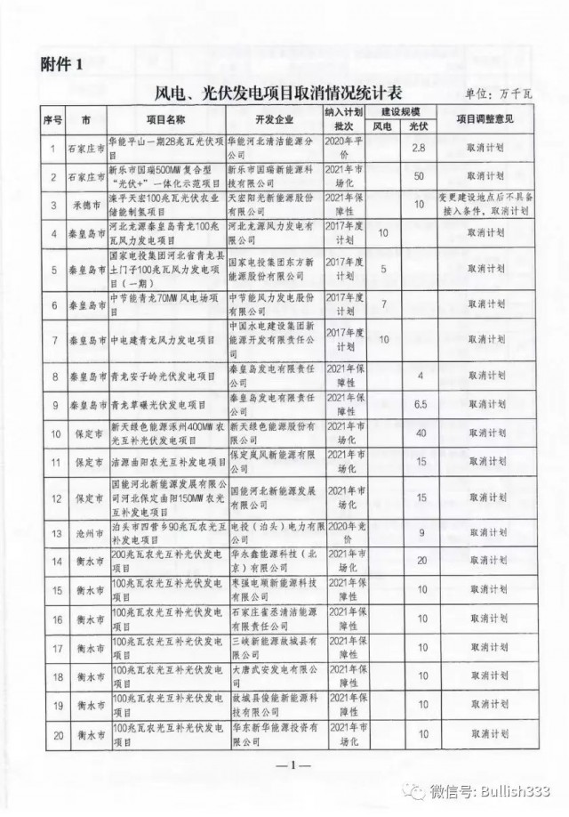 9月16日,河北發(fā)改委正式印發(fā)《關(guān)于公布風(fēng)電、光伏發(fā)電項(xiàng)目調(diào)整意見的通知》,對受用地政策調(diào)整、疫情等因素影響無法繼續(xù)實(shí)施或按期并網(wǎng)的項(xiàng)目進(jìn)行了調(diào)整。