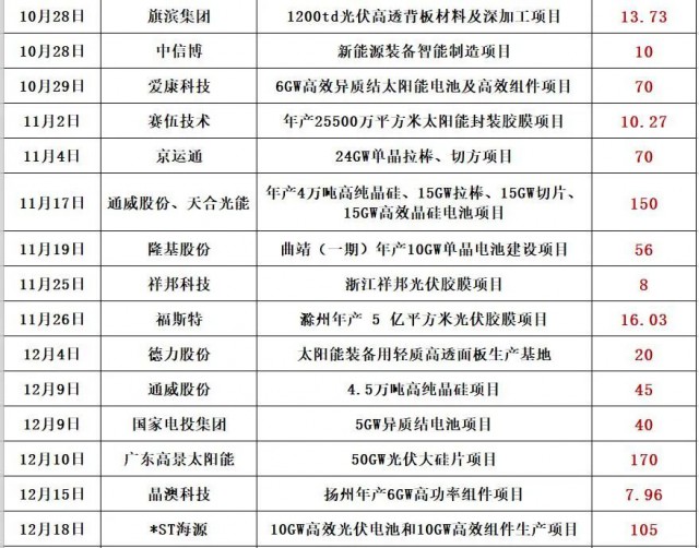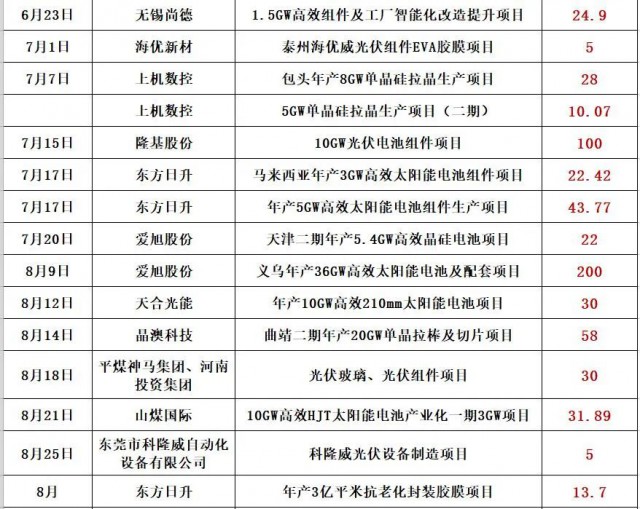 最新的消息是,通威股份擬在鹽城市投資25GW高效光伏組件項目,預(yù)計固定資產(chǎn)投資約40億元。同期消息,天合光能擬投資60億,在淮安簽約15GW電池片和15GW組件項目!