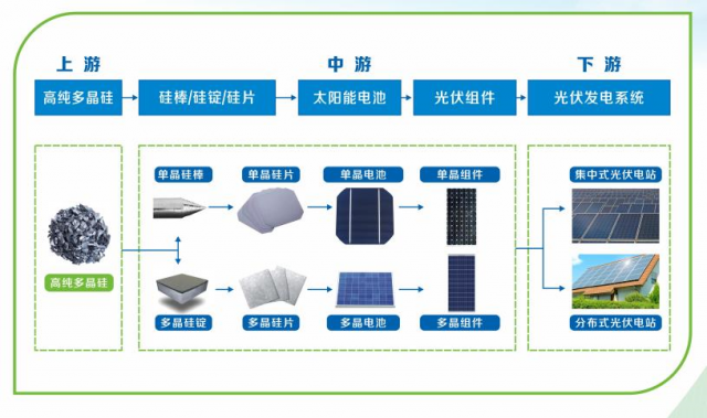 光伏產(chǎn)業(yè)是將多晶硅通過各類技術(shù)和工藝線路生產(chǎn)出太陽能電池片,并將太陽能電池經(jīng)過串并聯(lián)后進(jìn)行封裝保護(hù)形成大面積的太陽能電池組件,再配合功率控制器等,形成光伏發(fā)電裝置的產(chǎn)業(yè)鏈。