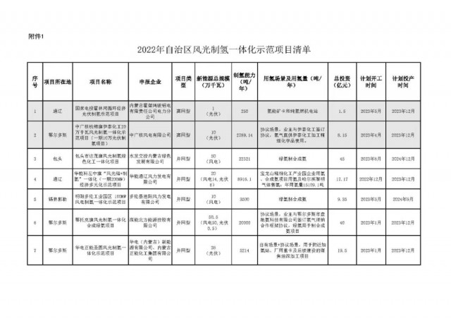為深入貫徹習近平總書記關(guān)于內(nèi)蒙古系列重要指示精神和《內(nèi)蒙古自治區(qū)人民政府辦公廳關(guān)于促進氫能產(chǎn)業(yè)高質(zhì)量發(fā)展的意見》(內(nèi)政辦發(fā)〔2022〕15號)精神,有序推動全區(qū)風光制氫一體化示范項目建設(shè),按照《內(nèi)蒙古自治區(qū)風光制氫一體化示范項目實施細則(2022年版)》有關(guān)要求,我局組織評估并優(yōu)選了7個風光制氫一體化示范項目(以下簡稱“示范項目”),經(jīng)自治區(qū)人民政府審定同意批復實施?,F(xiàn)將有關(guān)事宜通知如下。