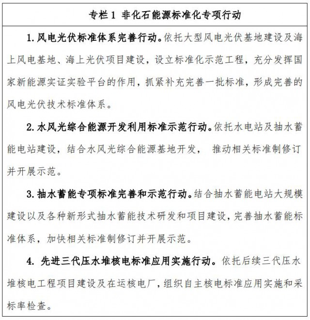 ——建立完善以光伏、風電為主的可再生能源標準體系,研究建立支撐新型電力系統(tǒng)建設(shè)的標準體系,加快完善新型儲能標準體系,有力支撐大型風電光伏基地、分布式能源等開發(fā)建設(shè)、并網(wǎng)運行和消納利用。