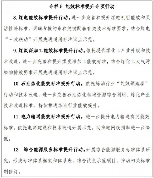 組織推進煤炭、石油和天然氣綠色高效生產(chǎn)轉(zhuǎn)化和利用相關(guān)標準制修訂。重點推動煤炭清潔高效生產(chǎn)、利用和石油煉化等領(lǐng)域節(jié)能降碳相關(guān)標準提升,進一步提升煤電、煤炭深加工能效相關(guān)標準,完善和提升石油煉化能效相關(guān)標準。