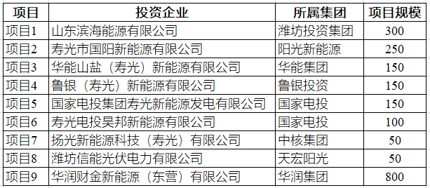 魯北鹽堿灘涂地千萬千瓦風(fēng)光儲一體化基地共分為9個項目,由華潤集團(tuán)、濰坊投資集團(tuán)、陽光電源、國家電投、華能集團(tuán)等企業(yè)聯(lián)合開發(fā)