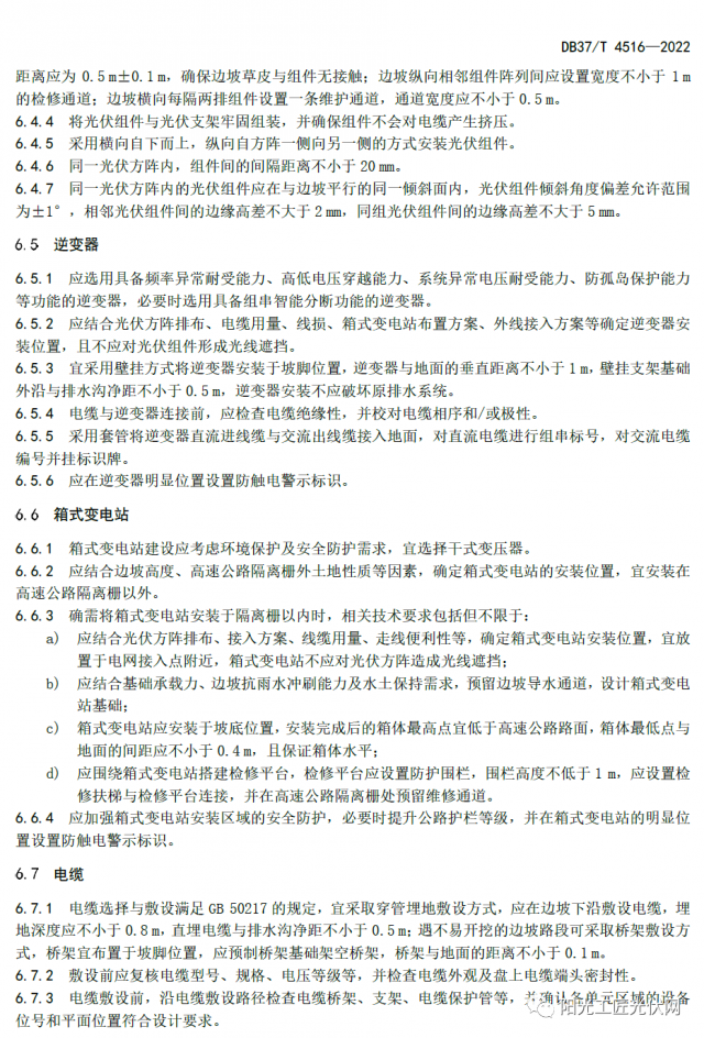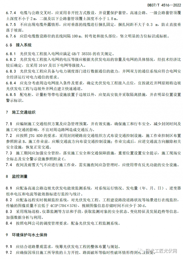 山東高速集團(tuán)黨委常委、副總經(jīng)理石振源回答說(shuō),本標(biāo)準(zhǔn)是在現(xiàn)行光伏發(fā)電工程建設(shè)技術(shù)標(biāo)準(zhǔn)體系下,根據(jù)高速公路特點(diǎn)制定的。標(biāo)準(zhǔn)規(guī)定了邊坡光伏發(fā)電工程的項(xiàng)目選址、施工交通組織、監(jiān)控測(cè)量、環(huán)境保護(hù)與水土保持等技術(shù)要求,內(nèi)容詳細(xì)、全面、完整,具有較強(qiáng)的專(zhuān)業(yè)性和操作性。