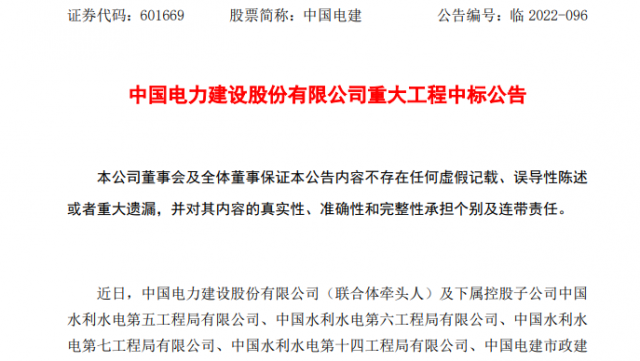上述聯(lián)合體成員包括中國水利水電第五、第六、第七、第十四工程局,以及中國電建市政建設集團有限公司與上海電力建設有限責任公司、四川公路橋梁建設集團有限公司。