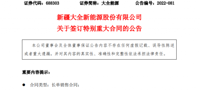 10月13日,大全能源剛剛披露另一項重大訂單,客戶約定2022年至2027年采購多晶硅料共15.53萬噸,預計采購金額約為470.56億元。