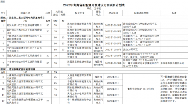 附件:2022年青海省新能源開發(fā)建設(shè)方案項目計劃表