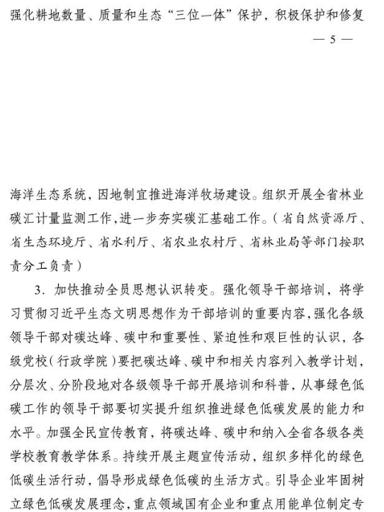 加快推進重大科技平臺建設(shè)。圍繞清潔低碳能源、生物固碳、零碳工業(yè)等領(lǐng)域,布局(重組)建設(shè)10家省級重點實驗室。加快建設(shè)低碳技術(shù)創(chuàng)新和產(chǎn)業(yè)創(chuàng)新平臺,圍繞高效光伏電池、高品質(zhì)特鋼、新一代智能電網(wǎng)、海上風(fēng)電、新型儲能等,布局建設(shè)5家左右省級技術(shù)創(chuàng)新中心。圍繞節(jié)能降碳、綠色制造、新型能源、循環(huán)經(jīng)濟等領(lǐng)域,引進布局一批重大新型研發(fā)機構(gòu),加快打造綠色低碳科技公共服務(wù)平臺。