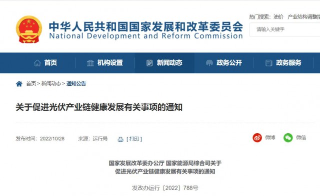 請各地方、企業(yè)按照本通知要求抓好落實,積極推進(jìn)光伏產(chǎn)業(yè)鏈各環(huán)節(jié)健康有序發(fā)展,遇到的重大問題及時反饋國家發(fā)展改革委、國家能源局,我們將會同有關(guān)部門積極協(xié)調(diào)。