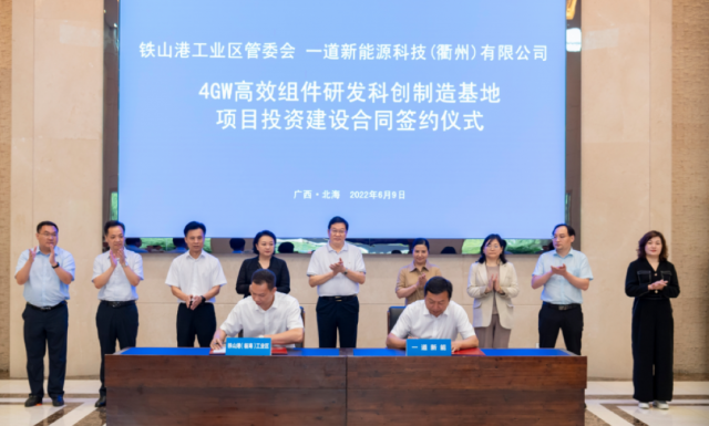 一道新能北海10GW高效組件研發(fā)科創(chuàng)制造基地項(xiàng)目簽約