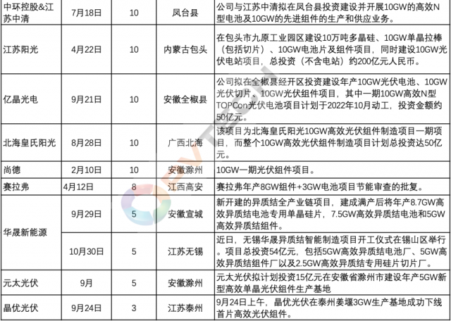 今年以來,以晶科能源、隆基綠能、天合光能、晶澳科技等為代表的行業(yè)第一梯隊(duì)主流組件大廠為鞏固各自市場(chǎng)地位、把握行業(yè)發(fā)展帶來的市場(chǎng)機(jī)遇,均在積極投資新建組件產(chǎn)能。