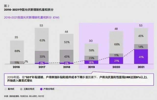 而隨著政策和盈利性驅(qū)動(dòng),以及“整縣推進(jìn)”戰(zhàn)略加持,未來(lái)以戶(hù)用光伏為代表的分布式能源發(fā)展將異軍突起,成為不可忽視的動(dòng)力和趨勢(shì)之一。