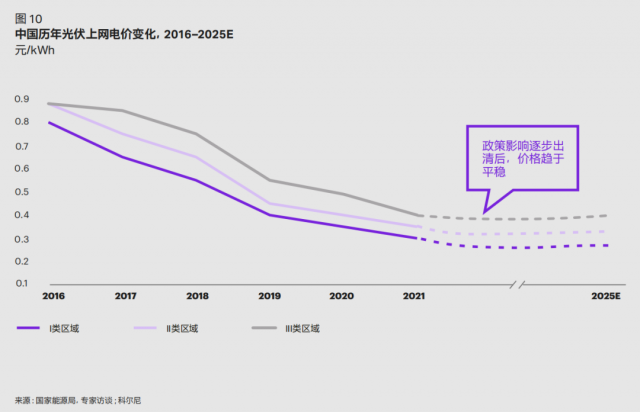 光伏電站的內(nèi)部收益率主要受上網(wǎng)電價(jià)、投資/發(fā)電成本直接影響,科爾尼預(yù)計(jì),未來(lái)上網(wǎng)電價(jià)會(huì)逐漸形成穩(wěn)定的市場(chǎng)定價(jià)機(jī)制,但長(zhǎng)期投資發(fā)電成本的下降將會(huì)顯著提升分布式光伏的收益。