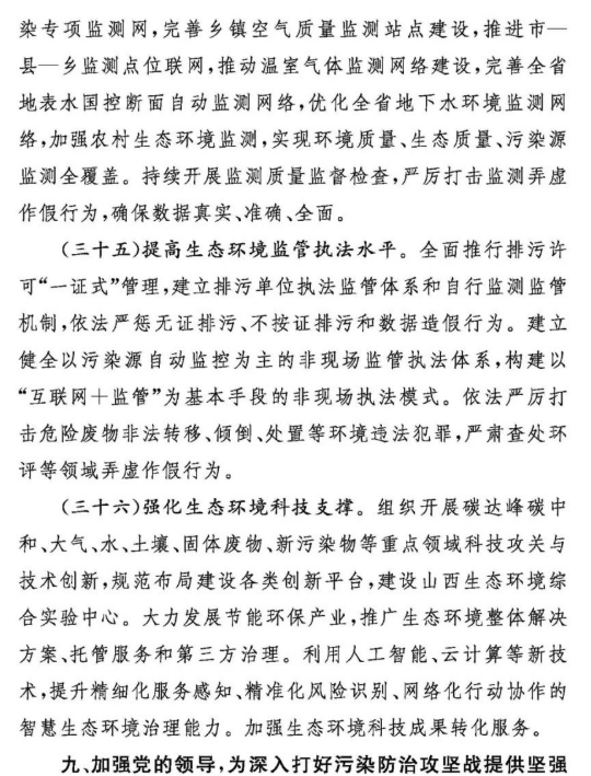 11月8日,山西政府網(wǎng)發(fā)布《關(guān)于深入打好污染防治攻堅戰(zhàn)的實施意見》。