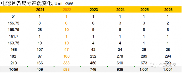 (來源:PV Infolink,尺寸產(chǎn)能為設(shè)備最大兼容規(guī)格)
