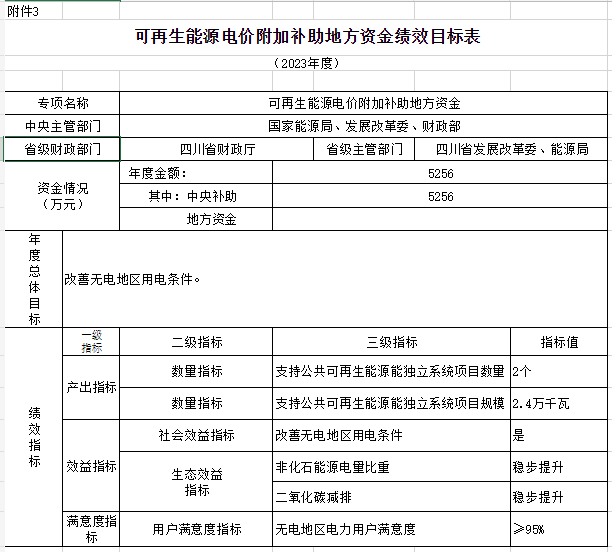 3.可再生能源電價(jià)附加補(bǔ)助地方資金績(jī)效目標(biāo)表