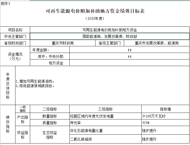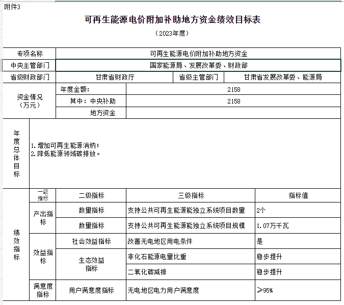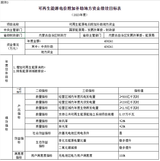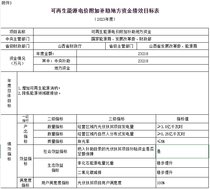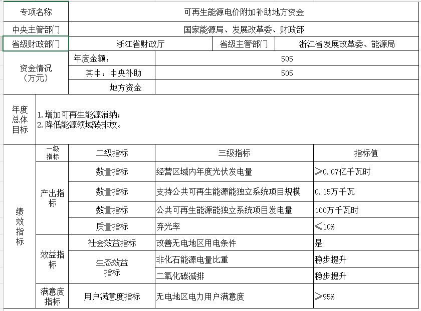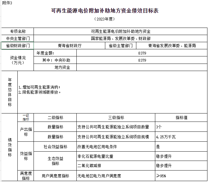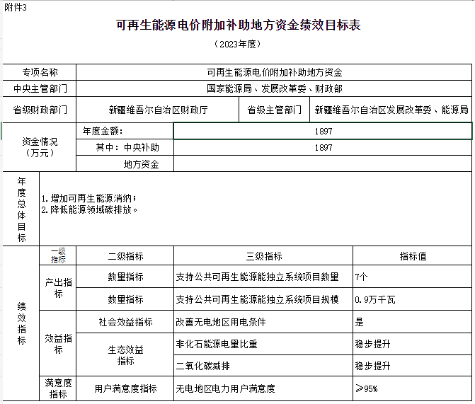 附件:1.可再生能源電價附加補助地方資金預(yù)算匯總表3.可再生能源電價附加補助地方資金績效目標(biāo)表