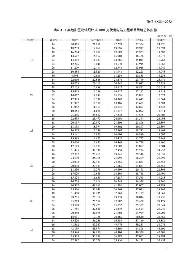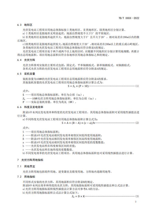 12月5日,自然資源部發(fā)布“《光伏發(fā)電站工程項目用地控制指標》等3項行業(yè)標準報批稿公示”,文件指出:光伏發(fā)電站工程項目用地總體指標按Ⅰ類地形區(qū)、Ⅱ類地形區(qū)、Ⅲ類地形區(qū)分別計算。光伏發(fā)電站工程項目處于兩個或兩個以上地形區(qū)時,應根據不同地形區(qū)分別計算用地規(guī)模,再累計得出總用地面積。項目用地總面積應符合各地形區(qū)用地總體指標之和的規(guī)定。