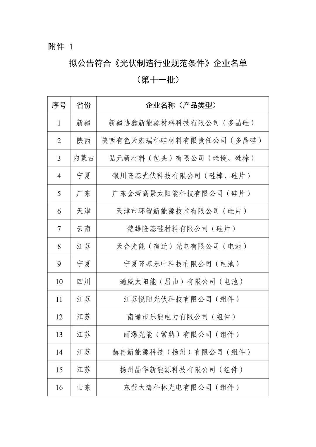 附件1擬公告符合《光伏制造行業(yè)規(guī)范條件》企業(yè)名單(第十一批)
