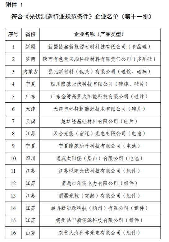 工信部正式發(fā)布第十一批《光伏制造行業(yè)規(guī)范條件》企業(yè)名單