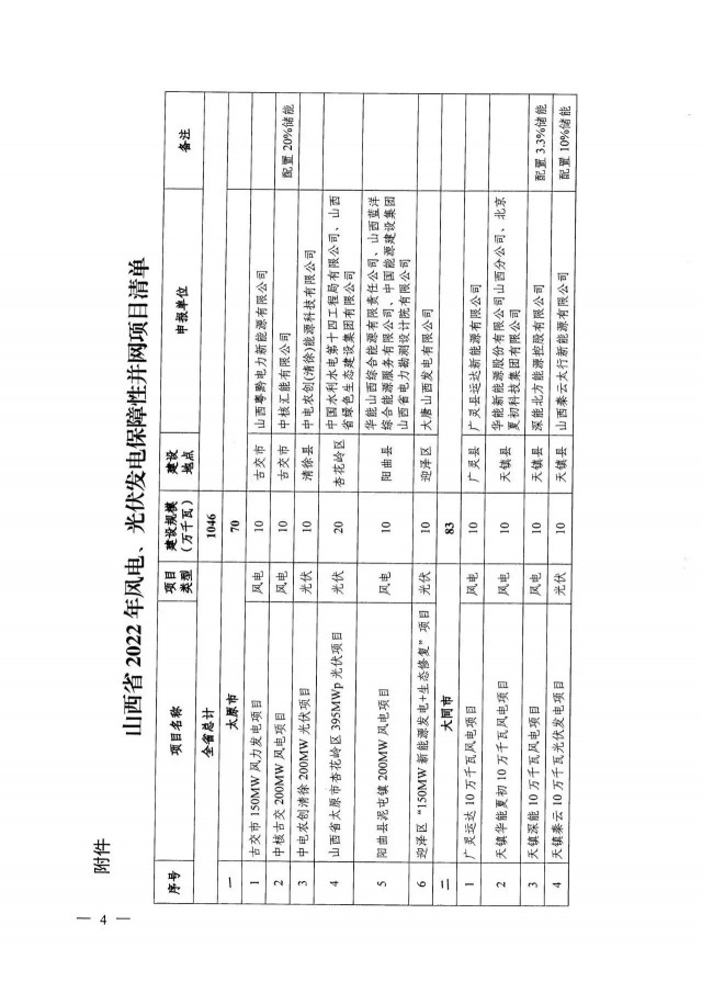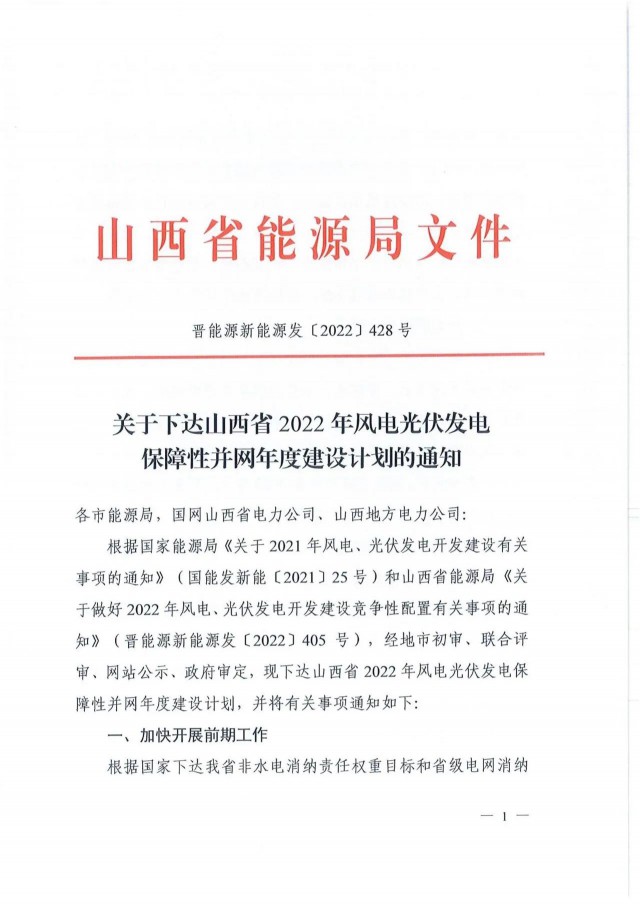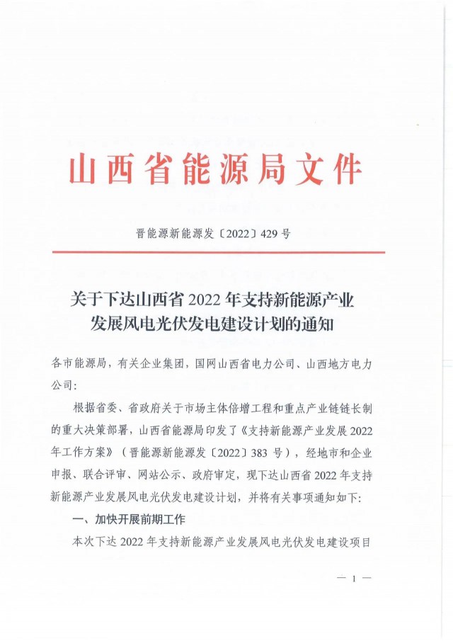 近日,山西省能源局先后印發(fā)了《關(guān)于下達(dá)山西省2022年風(fēng)電光伏發(fā)電保障性并網(wǎng)年度建設(shè)計(jì)劃的通知》(晉能源新能源發(fā)〔2022〕428號)和《關(guān)于下達(dá)山西省2022年支持新能源產(chǎn)業(yè)發(fā)展風(fēng)電光伏發(fā)電建設(shè)計(jì)劃的通知》(晉能源新能源發(fā)〔2022〕429號),共下達(dá)風(fēng)電、光伏項(xiàng)目132個,規(guī)模合計(jì)1418萬千瓦(14.18GW)。
