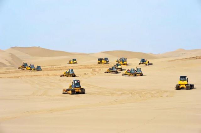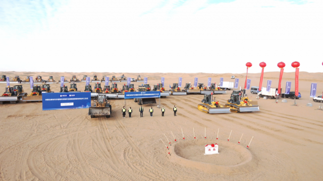 進入12月,庫布其沙漠的氣溫已經(jīng)降至近零下20攝氏度。在庫布其基地項目先導工程建設(shè)現(xiàn)場,機器的轟鳴聲打破了冬日沙漠的寂靜,由達拉特旗組織實施的先導工程,包括場平及水、電、路、網(wǎng)、訊等基礎(chǔ)設(shè)施的建設(shè)工作正在有序推進。