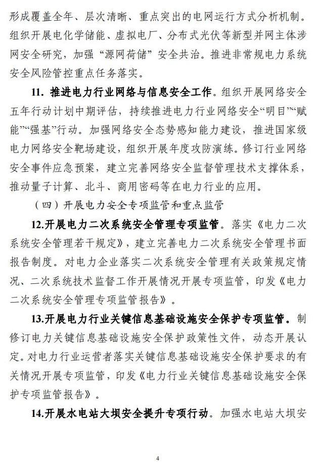 加強(qiáng)電網(wǎng)安全風(fēng)險(xiǎn)管控。完善電網(wǎng)運(yùn)行方式分析制度,形成覆蓋全年、層次清晰、重點(diǎn)突出的電網(wǎng)運(yùn)行方式分析機(jī)制。組織開展電化學(xué)儲(chǔ)能、虛擬電廠、分布式光伏等新型并網(wǎng)主體涉網(wǎng)安全研究,加強(qiáng)“源網(wǎng)荷儲(chǔ)”安全共治。推進(jìn)非常規(guī)電力系統(tǒng)安全風(fēng)險(xiǎn)管控重點(diǎn)任務(wù)落實(shí)。