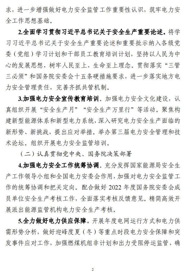 為貫徹落實(shí)黨的二十大精神,扎實(shí)做好2023年電力安全監(jiān)管工作,確保電力系統(tǒng)安全穩(wěn)定運(yùn)行和電力可靠供應(yīng),推動(dòng)全國電力安全生產(chǎn)形勢持續(xù)穩(wěn)定向好,我局制定了《2023年電力安全監(jiān)管重點(diǎn)任務(wù)》?,F(xiàn)印發(fā)給你們,請結(jié)合本地區(qū)、本單位實(shí)際,認(rèn)真貫徹落實(shí)。