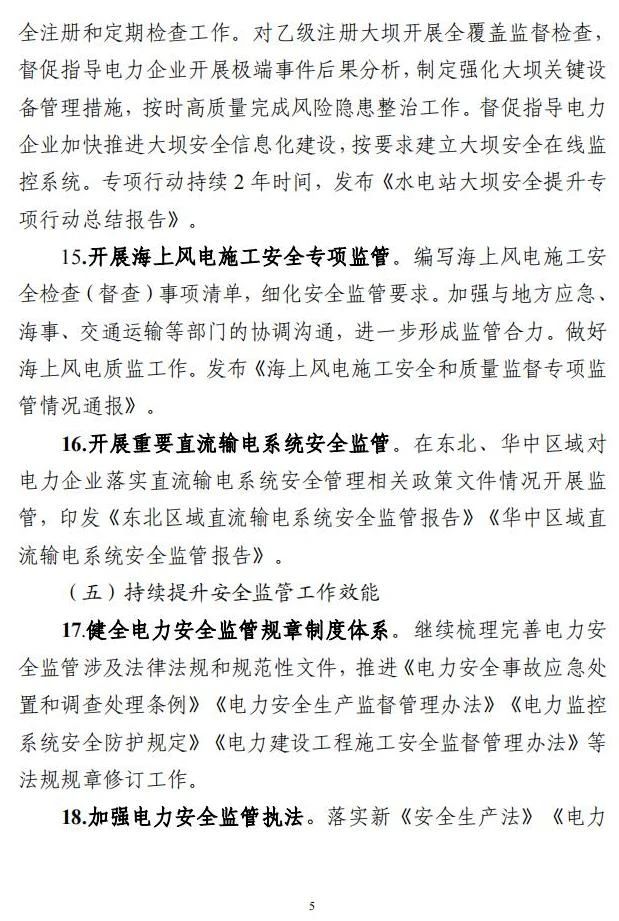 加強(qiáng)施工安全監(jiān)管和工程質(zhì)量監(jiān)督工作。對(duì)全國在建電力建設(shè)重點(diǎn)工程(水電、大型火電、抽水蓄能、特高壓工程、大型風(fēng)電光伏工程)開展“四不兩直”施工安全及質(zhì)量監(jiān)督專項(xiàng)督查。做好以信用為基礎(chǔ)的新型電力安全監(jiān)管機(jī)制試點(diǎn)。