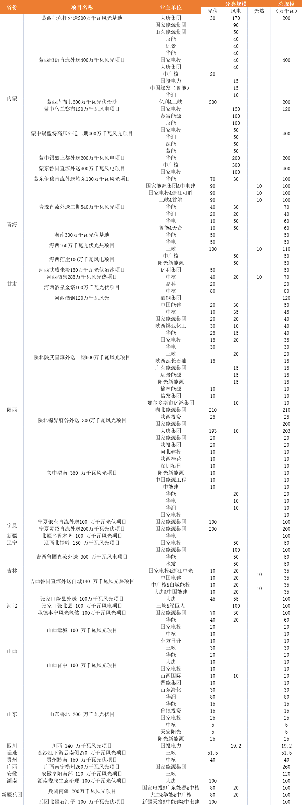 說(shuō)明:上述數(shù)據(jù)通過(guò)公開(kāi)信息整理,各企業(yè)數(shù)據(jù)存在未明確項(xiàng)目,具體以企業(yè)官方數(shù)據(jù)為準(zhǔn)。此外,大基地存在聯(lián)合體業(yè)主,本表數(shù)據(jù)以牽頭企業(yè)為主。