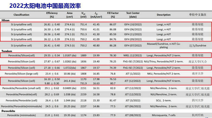 2022太陽(yáng)電池中國(guó)最高效率發(fā)布,隆基綠能共有7個(gè)電池效率入選,占此次效率結(jié)果發(fā)布的近1/2。