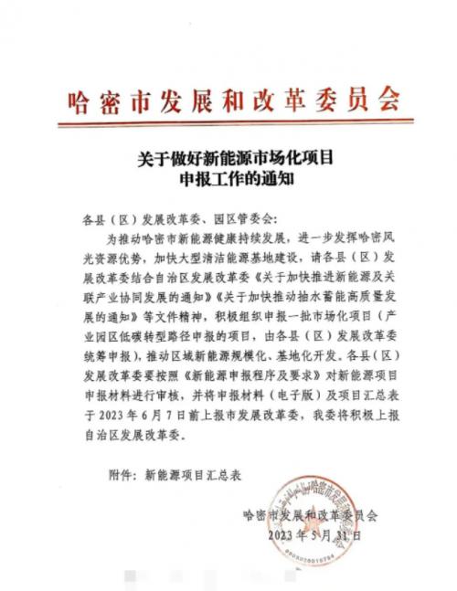 《通知》指出,為推動(dòng)哈密市新能源健康持續(xù)發(fā)展,進(jìn)一步發(fā)揮哈密風(fēng)光資源優(yōu)勢(shì),加快大型清潔能源基地建設(shè),請(qǐng)各縣(區(qū))發(fā)展改革委結(jié)合自治區(qū)發(fā)展改革委《關(guān)于加快推進(jìn)新能源及關(guān)聯(lián)產(chǎn)業(yè)協(xié)同發(fā)展的通知》《關(guān)于加快推動(dòng)抽水蓄能高質(zhì)量發(fā)展的通知》等文件精神,積極組織申報(bào)一批市場(chǎng)化項(xiàng)目(產(chǎn)業(yè)園區(qū)低碳轉(zhuǎn)型路徑申報(bào)的項(xiàng)目,由各縣(區(qū))發(fā)展改革委統(tǒng)籌申報(bào)),推動(dòng)區(qū)域新能源規(guī)?;?、基地化開發(fā)。