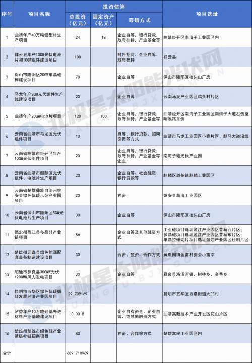 建設(shè)內(nèi)容:項(xiàng)目根據(jù)云南馬龍產(chǎn)業(yè)園區(qū)雞頭村片區(qū)產(chǎn)業(yè)規(guī)劃,依托曲靖市綠色硅光伏產(chǎn)業(yè)發(fā)展基礎(chǔ),規(guī)劃建設(shè)光伏組件生產(chǎn)線、辦公區(qū)、生活區(qū)及配套設(shè)施。項(xiàng)目建成后,可承接曲靖市綠色硅光伏產(chǎn)業(yè)轉(zhuǎn)移,強(qiáng)化曲靖市綠色硅光伏產(chǎn)業(yè)鏈中游制造端,助力曲靖市打造綠色硅光伏全產(chǎn)業(yè)鏈,釋放曲靖光伏產(chǎn)業(yè)新動能。吸引了晶澳、陽光、德方納米等一批行業(yè)龍頭企業(yè)落戶曲靖,投資建設(shè)了系列項(xiàng)目。其中,晶澳投資173億元連續(xù)布局建設(shè)4期項(xiàng)目、陽光能源投資39.5億元連續(xù)布局建設(shè)3期項(xiàng)目、德方納米投資300億元連續(xù)布局建設(shè)13期項(xiàng)目,有力推動了綠色硅光伏、新能源電池產(chǎn)業(yè)全產(chǎn)業(yè)鏈集群發(fā)展。項(xiàng)目建成投產(chǎn)后,產(chǎn)能為2GW/年,按組件價(jià)格1.7元/瓦,可實(shí)現(xiàn)年?duì)I業(yè)額34億元,除去投資成本及設(shè)備折舊成本,一年內(nèi)可實(shí)現(xiàn)項(xiàng)目回本,預(yù)計(jì)每年可實(shí)現(xiàn)利稅5億元左右。