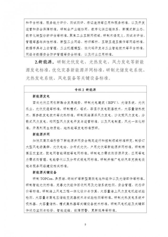 在新能源方面:研制光伏發(fā)電、光熱發(fā)電、風(fēng)力發(fā)電等新能源發(fā)電標(biāo)準(zhǔn),優(yōu)化完善新能源并網(wǎng)標(biāo)準(zhǔn),研制光儲發(fā)電系統(tǒng)光熱發(fā)電系統(tǒng)、風(fēng)電裝備等關(guān)鍵設(shè)備標(biāo)準(zhǔn)。
